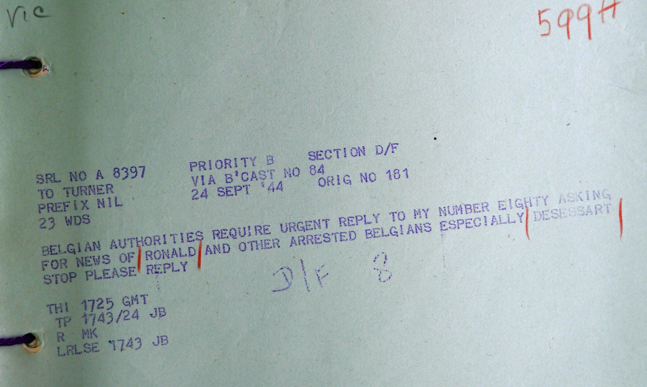 BELGIAN AUTHORITIES REQUIRE URGENT REPLY TO MY NUMBER EIGHTY (80) ASKING FOR NEWS OF RONALD AND OTHER ARRESTED BELGIANS ESPECIALLY DESESSART STOP PLEASE REPLY