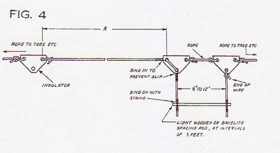 It is important to keep the current carrying part A-A, of the wire straight and so far as possible in the "clear" and it should be recommended that the extremities of the aerial are voltage points and should be fairly well insulated.