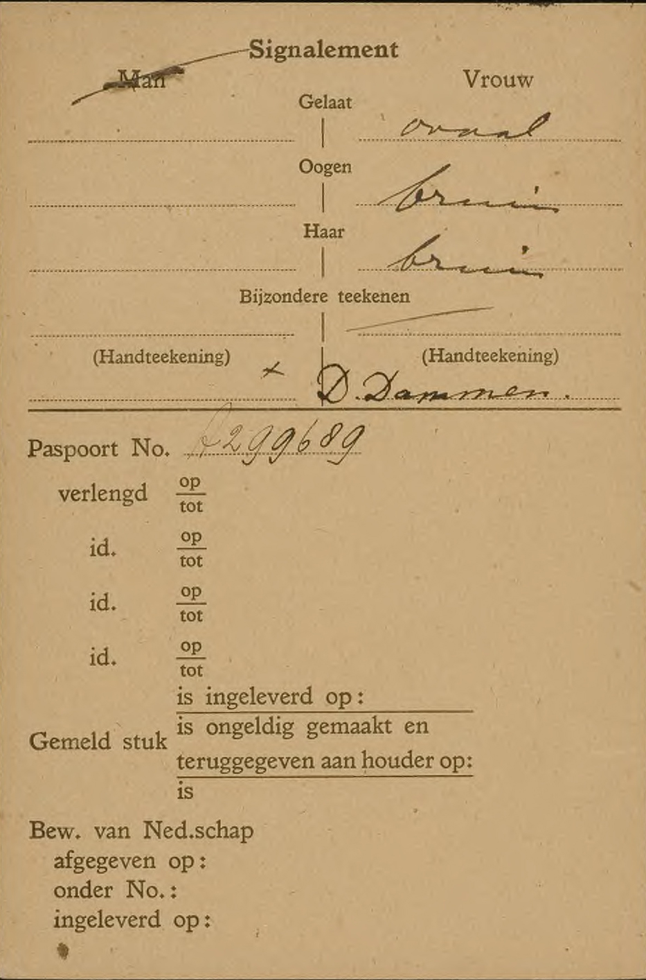 Vader: Cornelis Dammen, geboren 15 Maart 1889 te Amsterdam