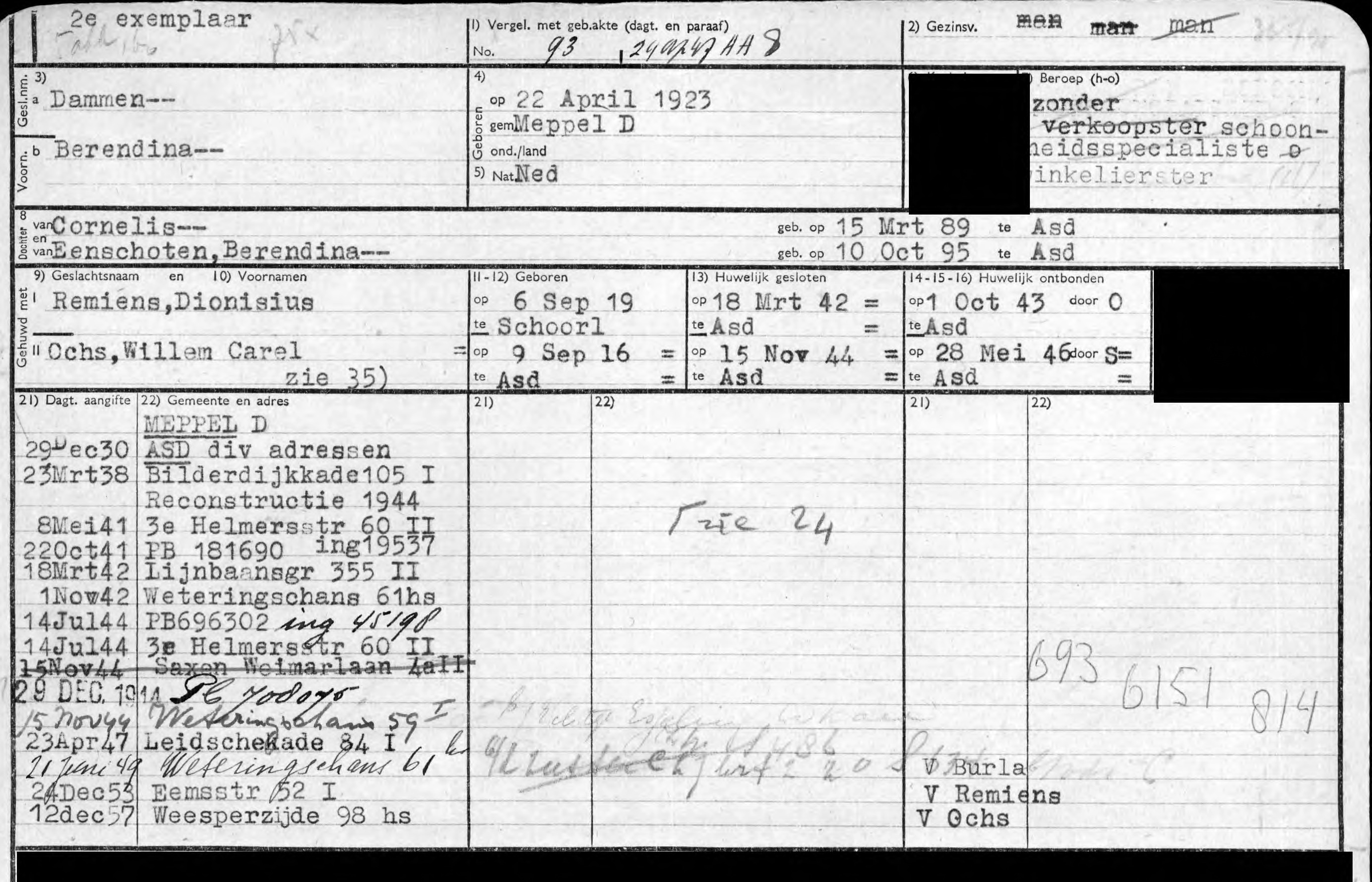 Moeder: Berendina Eenschoten, geboren 19 Oktober 1895 te Amsterdam.