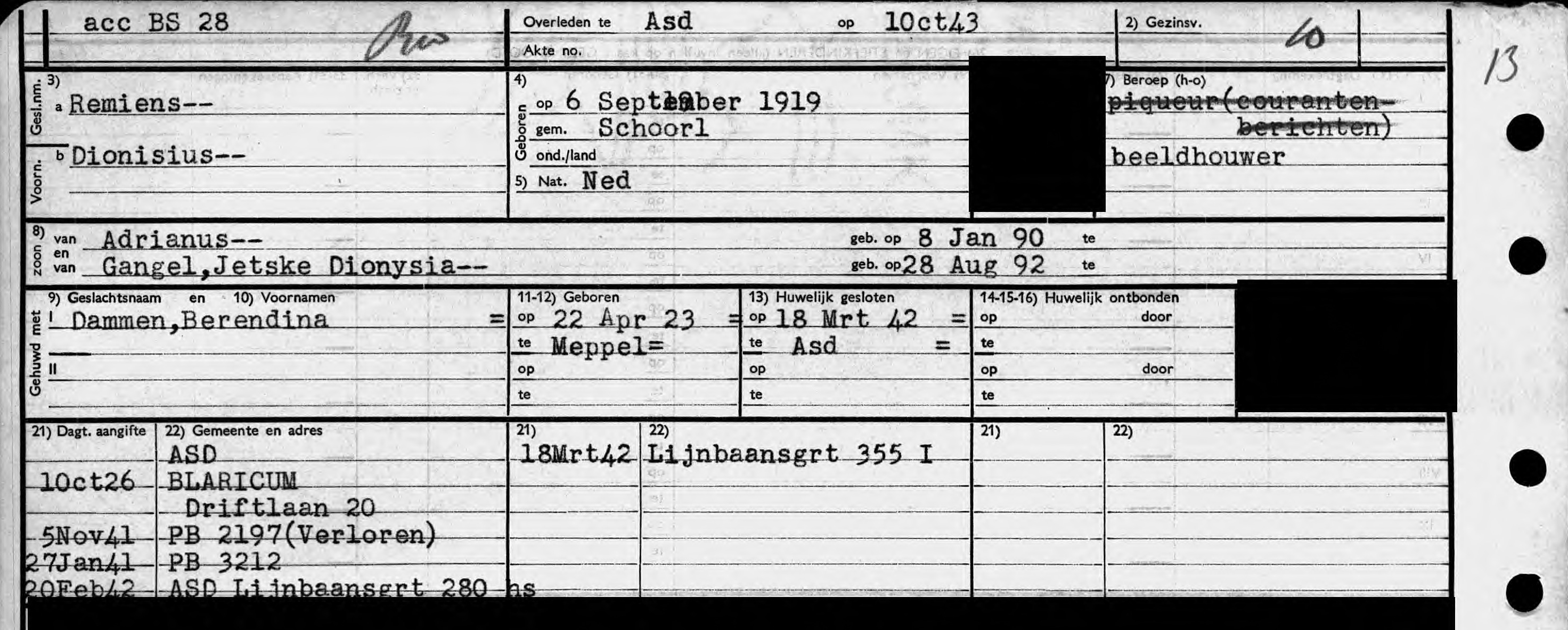 Gehuwd: 18 Maart 1942 te Amsterdam.