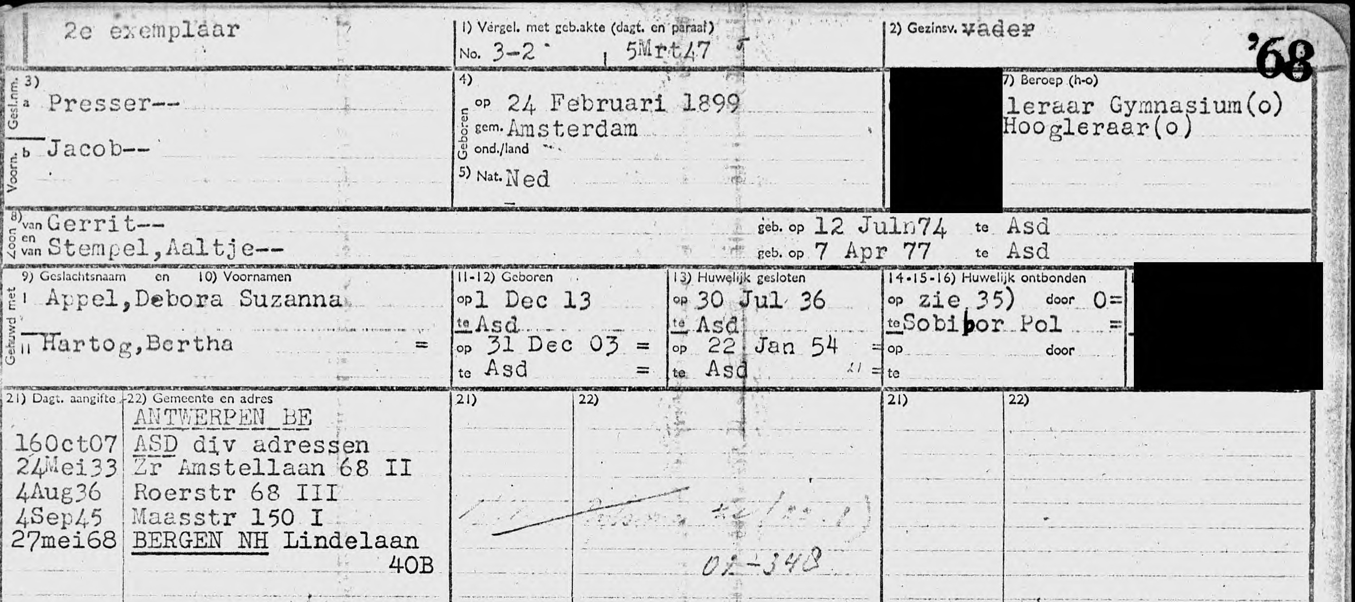 Tijdelijk woonde het gezin in Antwerpen, omdat zijn vader daar emplooi had gevonden, nadat hij zijn baan in Amsterdam was kwijtgeraakt. Presser hield er een enigszins Vlaamse tongval aan over, waaraan hij zijn bijnaam "de Belg" dankte.