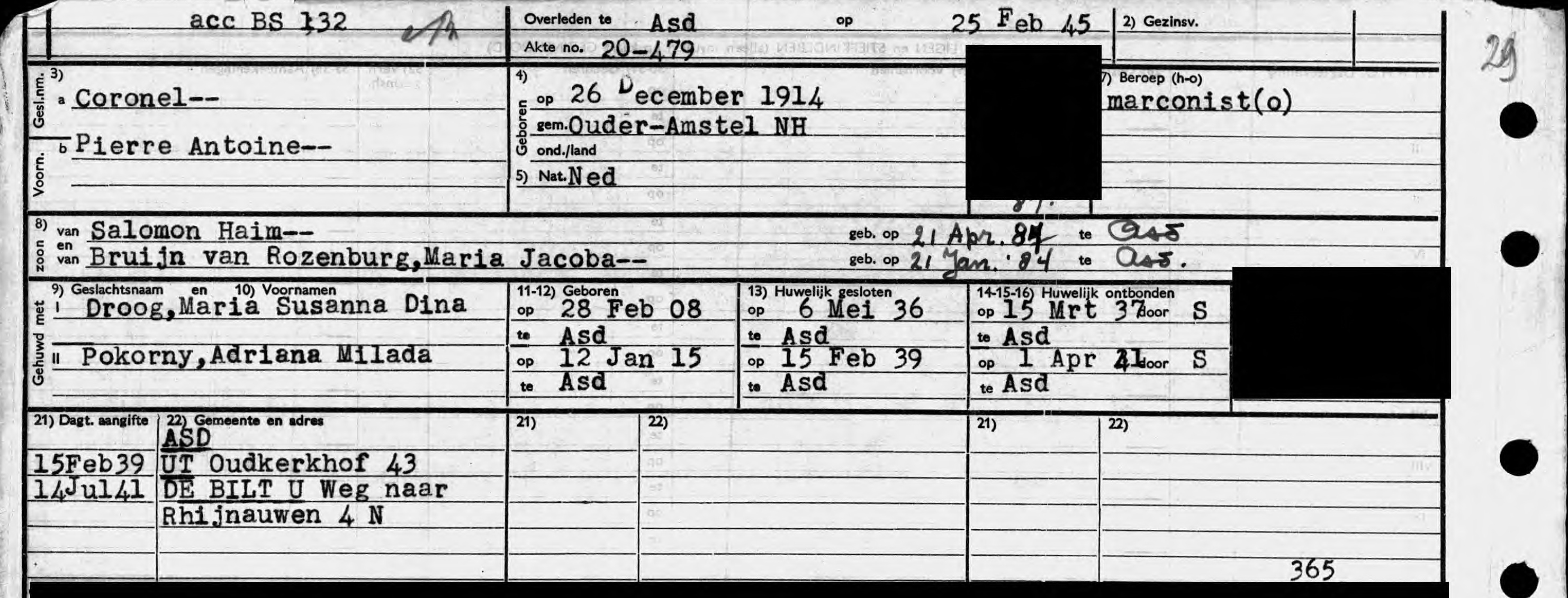 Gescheiden: 1 April 1941 te Amsterdam.