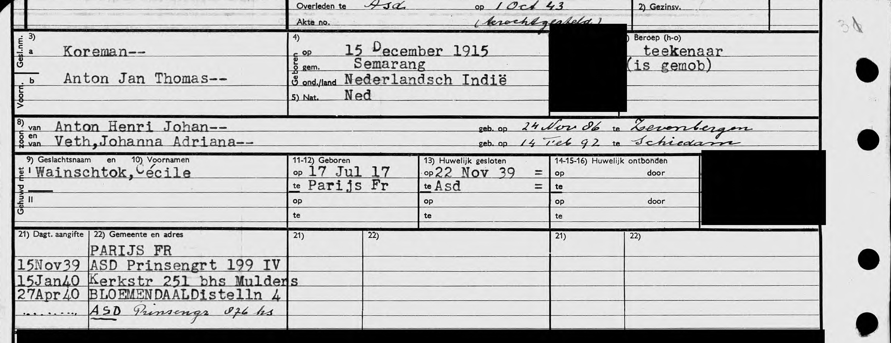 Gehuwd: 22 November 1939 te Amsterdam.